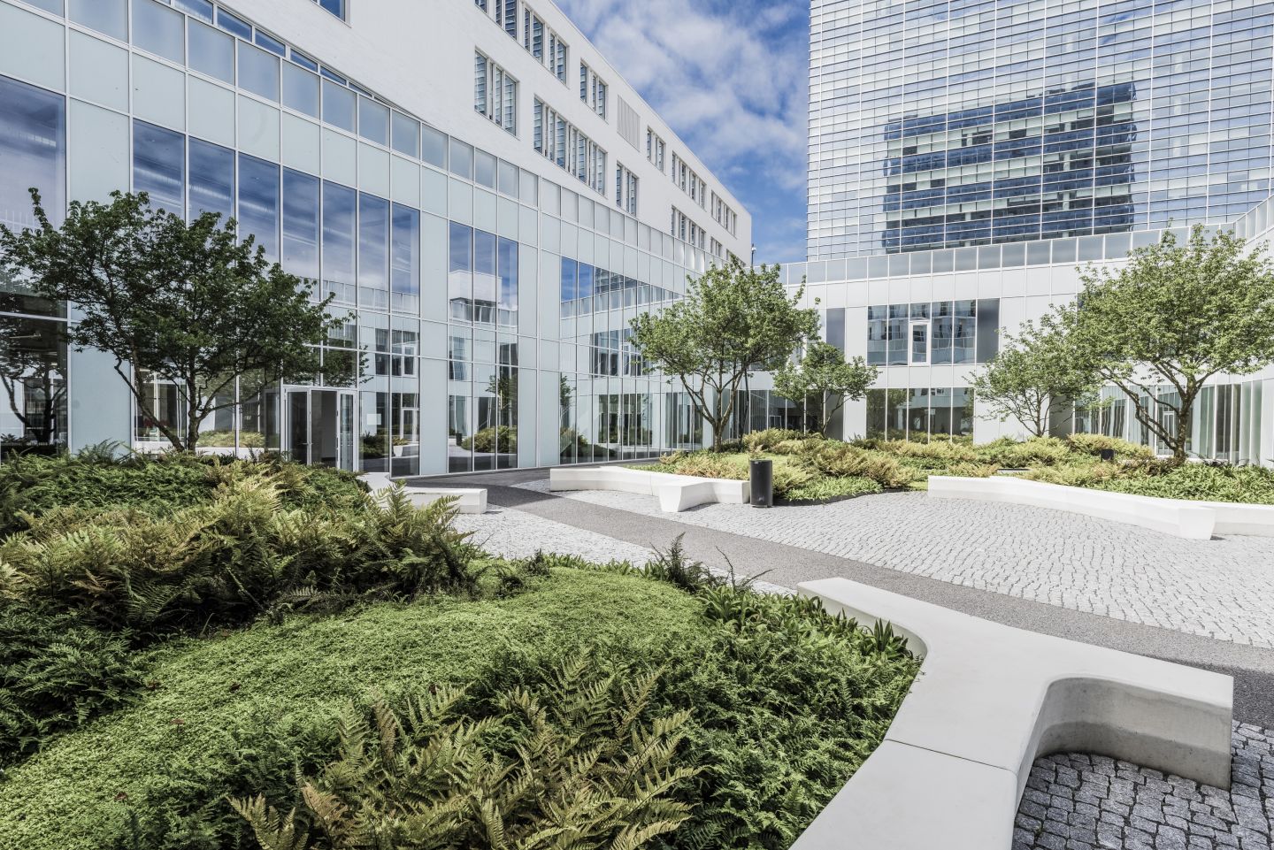 Stramien zet op de Artesis Plantijn Hogeschool sterk in op de integratie van het gebouw en zijn omgeving. De centrale patio op de parkingkelder en de platte daken worden met een duurzame meerwaarde voor de gebruikers ingericht; de patio als een aangename ontmoetingsruimte, de daken als aantrekkelijke kijktuin en hemelwaterbuffer. Via de ingang aan de brugzijde is het gebouw met Park Spoor Noord gelinkt.