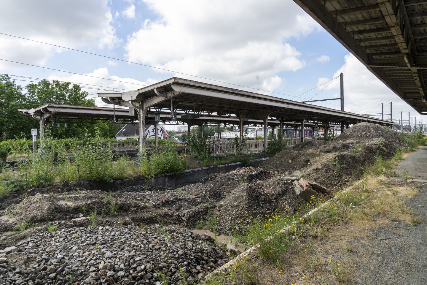 Ter plaatse werden we enthousiast over het brede horizonbeeld vanuit het toekomstige park: vanop de berm is er een 180° zicht op de stad. Op het terrein bevinden zich nog restanten van het rijke spoorverleden waaronder het verlaten Oost station met sympathieke perronluifels, de sporen, de spoorkade in natuursteen, een brugkraan. Twee monumentale, private watertorens domineren de skyline. We gaan aan de slag en consolideren die onderdelen als het erfgoed van morgen.