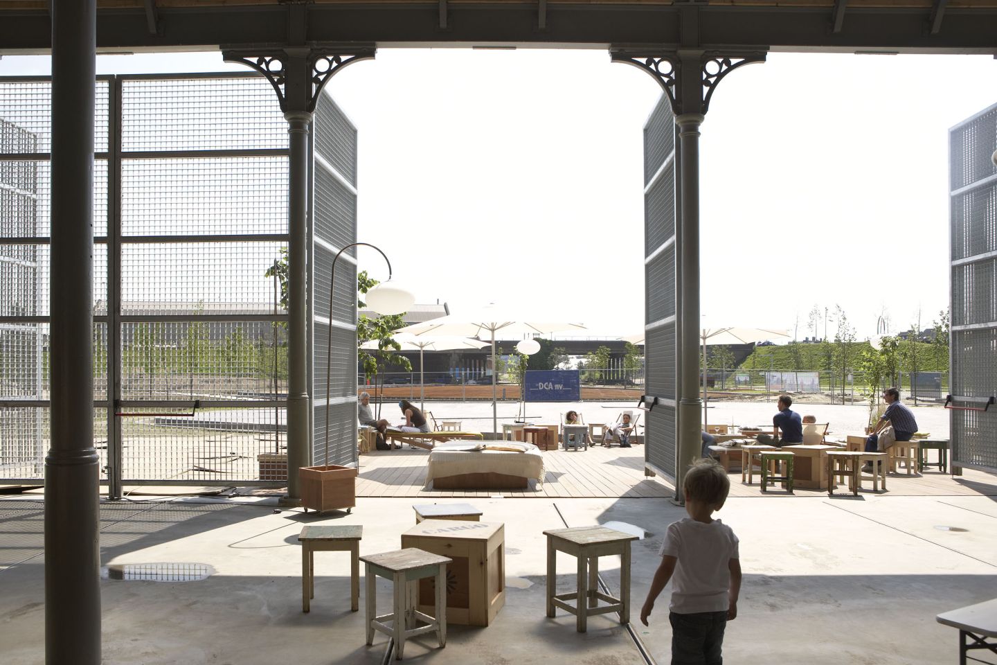 Het open en flexibel concept van deze polyvalente ruimte zorgde voor een zeer divers gebruik in de loop der jaren: van slachtvloer voor het jaarlijks offerfeest tot bruisende bar tijdens de warme zomermaanden. Hier, op dit overdekte maar met daglicht overgoten plein, vinden de meest verscheiden activiteiten een fantastisch onderdak…